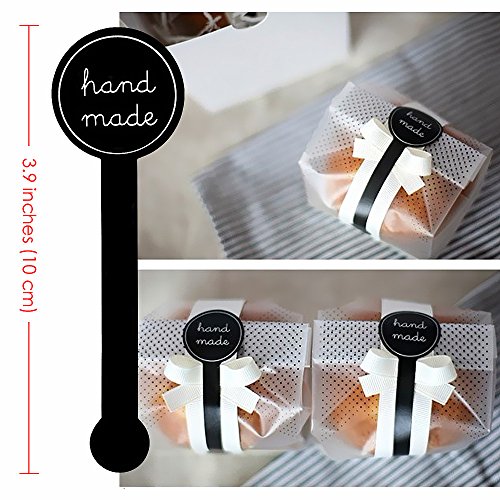 - Black Handmade Labels Stickers: Self adhesive stickers is black handmade decorative labels, can be used as candy stickers, cookie stickers, baking stickers and others. Packaging stickers size approx. 3.9 inches (10 cm).