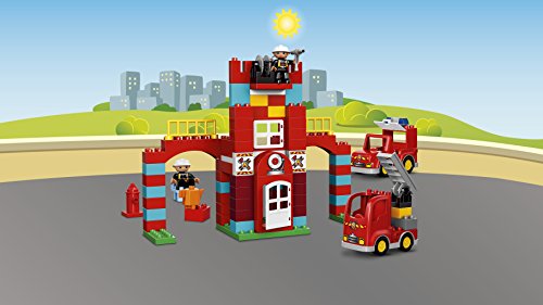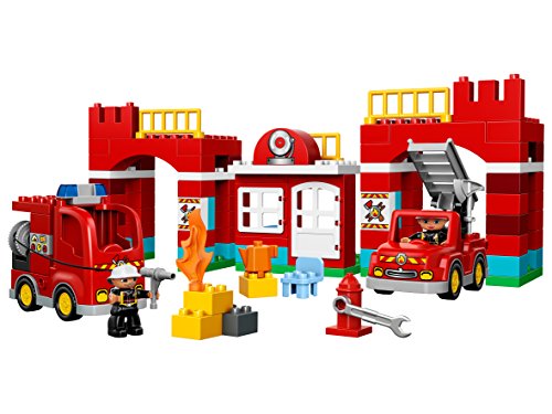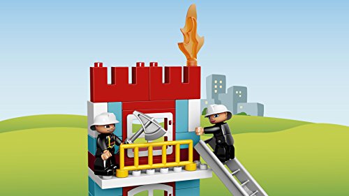 -. Feature : Enthält 2 LEGO DUPLO Figuren - genauer gesagt 2 Feuerwehrleute / Mit einem Feuerwehr-Hauptquartier inkl. Garagen sowie Fenster und Tür zum Öffnen / Enthält 2 Fahrzeuge: ein Löschfahrzeug mit aufrollbarem Schlauch sowie ein Feuerwehrauto mit beweglicher Leiter / Zubehör: Stein mit Feueralarm-Verzierung, Schraubenschlüssel, Flamme, Axt und Hydrant / Bereite die Fahrzeuge für den nächsten Rettungseinsatz vor.