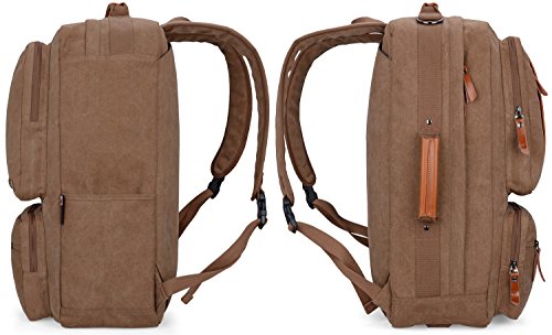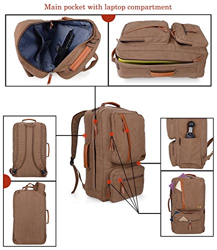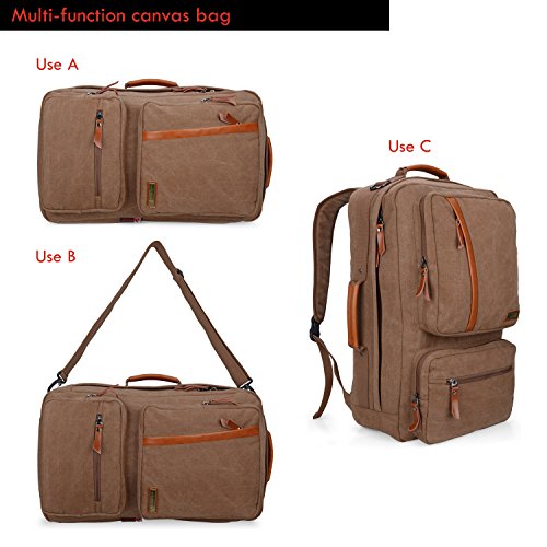 -. Feature : Material: Premium quality cotton canvas+ PU,Size: L 12.5 x W 9.5 x H 23 inches, Weight:1.49 kg (3.28lbs) / Exterior: Four front zipper pockets for pens,notebook,ect. Interior: A latop compartment for up to 15.6" laptop; a open pocket for ipad,books,etc. / A 47" removable shoulder strap inside the main pocket, you can carry this bags as shoulder backpack; cross body bag; duffel, tote,easy packing once you cross pack this back. / Feature: The back shoulder strap can be hidden in the back secret pocket if you use this backpack as cross body bag; / Multi-compartment design,perfect for use for: school, hiking, casual, travel, shopping, college, occasional, best gift, etc.