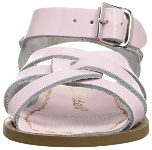 The Original Salt Water Sandal is defined by its hand-stitched, non-slip, molded rubber sole and scuff-resistant, water friendly genuine leather upper. All Salt-Water Sandals clean up very easily with mild soap and water, come with rust-proof brass buckles, and are made for in-and-out of water wear. They go from children’s sizes all the way up to adult sizes and are popular among celebrities and fashionistas alike. They are a comfortable, durable combination of timeless style and versatility.Feature