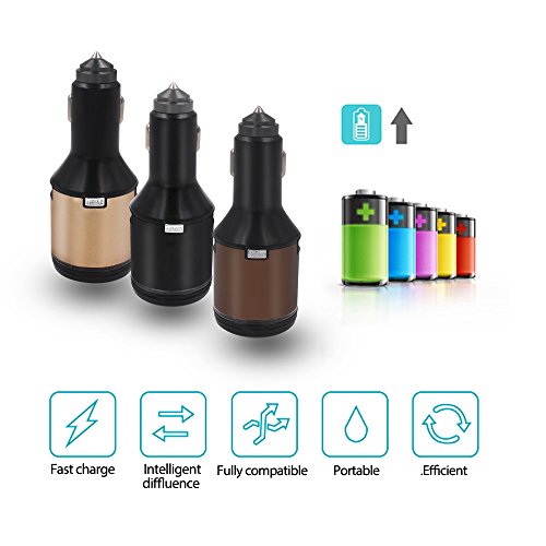 Kingtech Car Charger,4 In 1 Dual USB Car Charger & Car Fragrance & Electric Shaver Razor & Emergency Escape Hammer for IPhone Cell Phone Smartphone Ipad (Coffee)