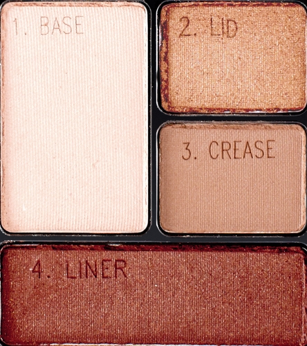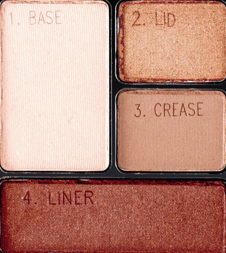 This eyeshadow makeup quad boasts extraordinary color thanks to ultra-blendable jet-milled pigments. Delivers a silky finish that lasts up to 12 hours. Ophthalmologist tested. Packaging may vary, what you receive may not be what is reflected on site. • Easily blendible pigments for extraordinary looks • Create your look in four simple steps with this eyeshadow quad • Silky finish • Up to 12 hours of exceptional wear Step 1. Apply base color all over the eyelid up to the eyebrow. Step 2. Sweep lid color from the eyelash line to eye crease. Step 3. Apply contour color to the eye crease and blend. Step 4. Create definition along the lash line with liner color.Feature