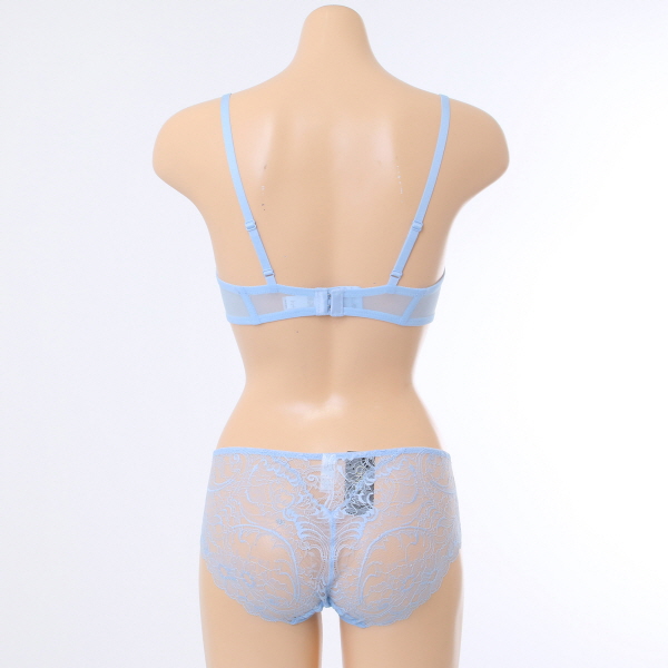 정교하고 가볍게 짜여진 "케미컬 레이스"를 사용하면서 그 위에 "투명 망사"로 덮어주어 은근히 비치는 베일장식 효과를 주면서도 겉옷에 두드러지지 않도록 커버해 주었습니다.