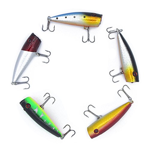 -. Feature : Quantity:5pcs; Length:Approx. 7cm; Weight:9g/piece; Color:as the picture shown / Diving depth:Top water ; Hook : 6# bend treble hook ,Sharp & High Penetration Hooks / Very attractive, simple, and effective,3D eyes make it a powerful catching tool / A tackle box must,the baits work great they swim and pop well.Wonderful quality and color to them. They feel very sturdy / OUR GUARANTEE: If for any reason you are not 100% satisfied with your Northern Brothers Fishing Lure Hooks, please let us know and we will immediately refund your purchase price - no questions asked