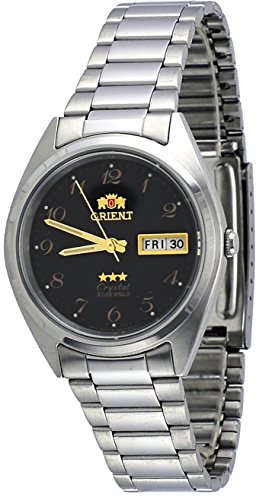 -. Title : Orient #FAB00003B Men's 3 Star Stainless Steel Black Numbers Dial Day Date Automatic Watch