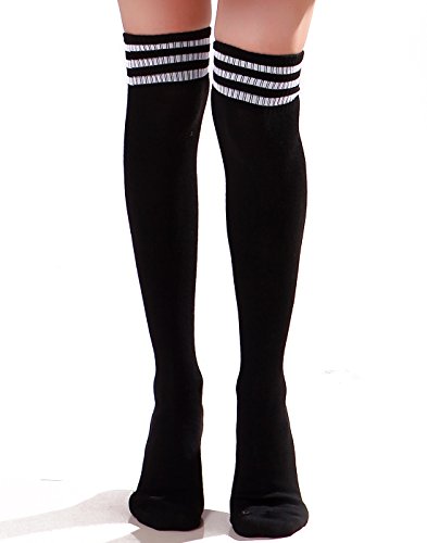 Title : HDE Women Three Stripe Over Knee High Socks Extra Long Athletic Sport Tube Socks (Black/White)