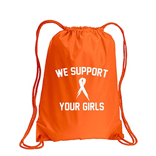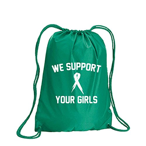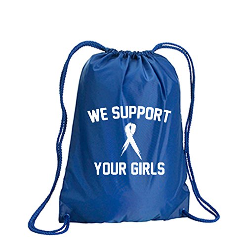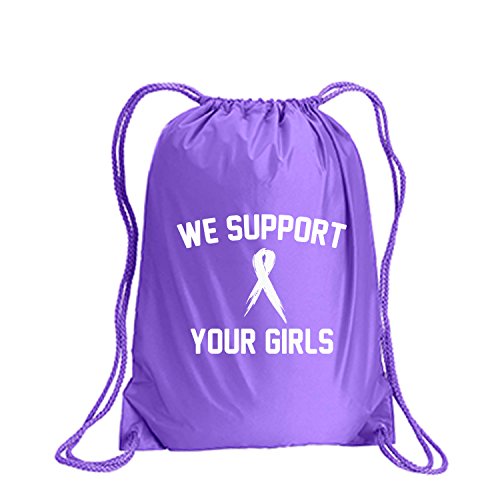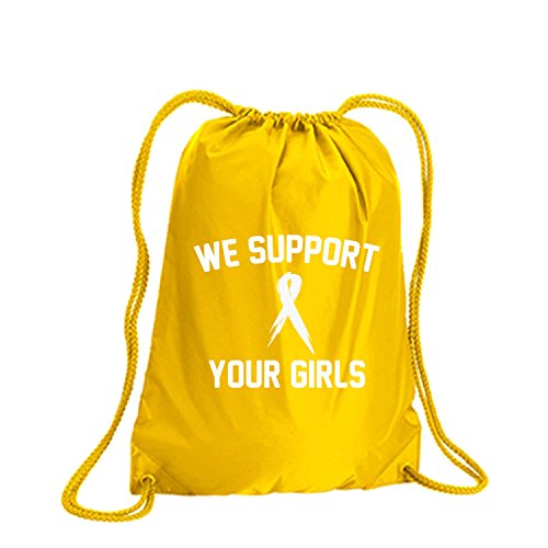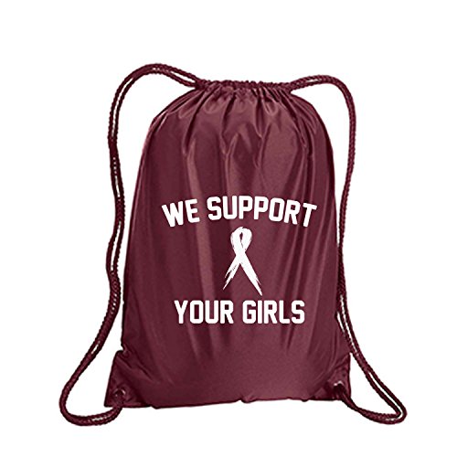 Product Description This durable and stylish nylon tote features "We Support Your Girls" on a cinch pack tote with white ink. Bag comes in small and large sizes and is made of a durable 210 Denier nylon and has color-matched draw cords. Printed in the USA on an imported bag. 0