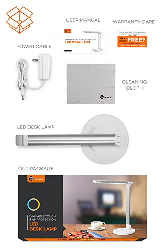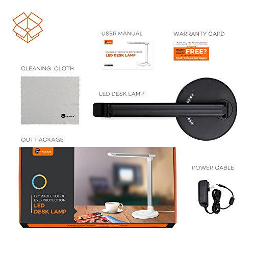 Package contents: 1 x TaoTronics LED desk lamp (model: tt-dl13 black) 1 x power adapter 1 x user manual 1 x cleaning cloth