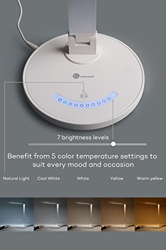 Touch control with 5 color modes (temperature) to choose from, Dimmable with 7 level of brightness to suit your activities
