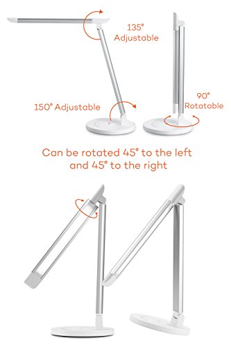 TaoTronics LED Desk Lamp Eye-caring Table Lamps, Dimmable Office Lamp with USB Charging Port, Touch Control, 5 Color Modes, White, 12W