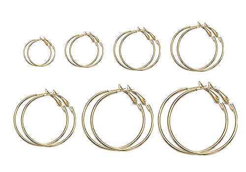 Honbay 7 Pairs Hoops Womens Earrings Set (Gold)