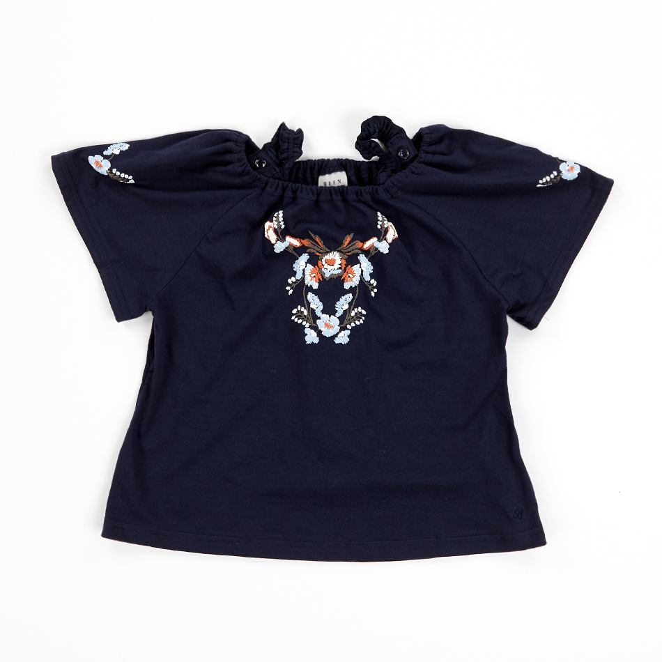 네이비 컬러의 드롭소매 티셔츠 아이템입니다.