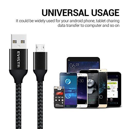 Universal Compatibility: EVISTR Micro USB Cable could be used for your digital voice recorder, smart phone, android phone, tablet, Hi-Fi MP3 player, camera, hard drive, power bank, game console and more Micro-USB connecting devices from brands the like Samsung, Nexus, Motorola, HTC, Nokia, LG, Sony, Huawei etc.