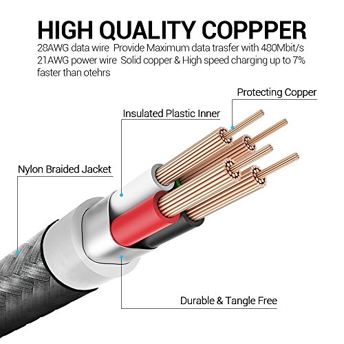 Charging Fast, Sync Data Quick: this Micro USB power cable line MAX support 9V 2A power, charging your device as fast as possible, get your cell phone battery juice back, never lose an important phone call due to power off; Premium copper cable 28AWG data wire could provide Maximum data transfer with 480Mbit/s