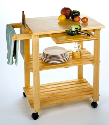 -. Title : Kitchen Cart with Cutting Board, Knife Block and Shelves