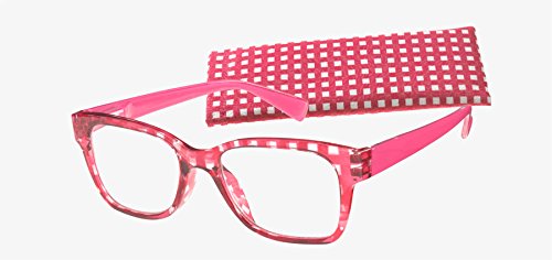 -. Binding : Eyewear -. Brand : ICU Eyewear -. Color : Black -. Department : womens -. Feature : Optical quality aspheric lenses for less distortion and eyestrain. / Spring hinges for a comfortable fit. / These are oversized, choose black if you are going for a strong confident look, magenta for fun. / In the picture it looks as though the frames are checkerboard in the front, that pattern is quite subtle. / They come with a soft case. -. Model : 7355 -. PackageQuantity : 1 -. ProductGroup : Apparel -. ProductTypeName : ACCESSORY -. Title : Oversized Checkerboard Women's Reading Glasses with Coordinating Case By ICU