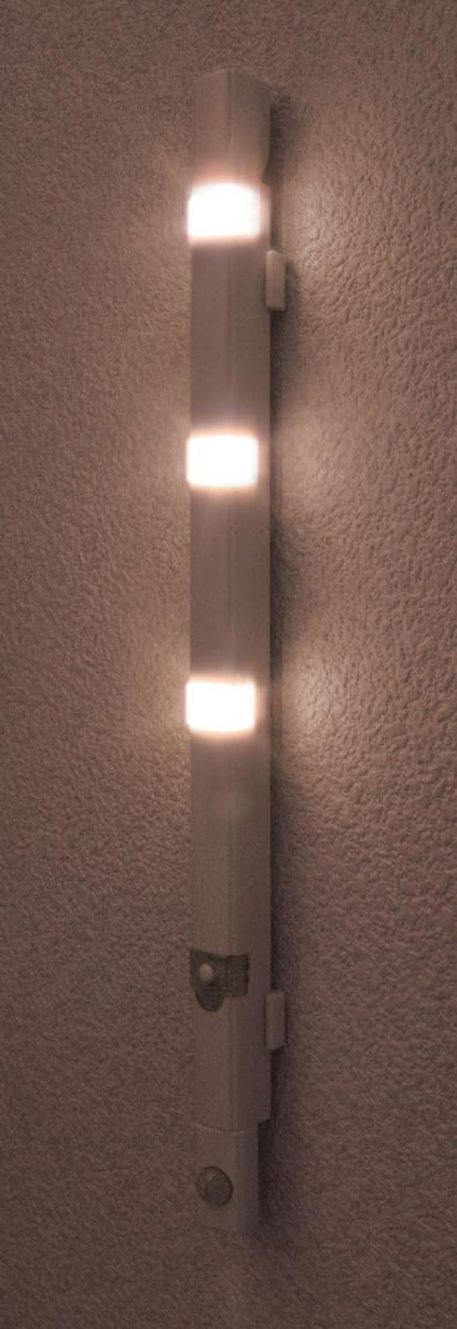 暗闇で人に反応して自動点灯します。乾電池式なので、コンセントのない場所でもご使用いただけます。狭い場所でも邪魔にならないすっきりスリムな形状です。暗い場所でセンサーが人を感知すると、ウォームホワイト色の3つのLEDライトが約 40秒間点灯します。光源にLEDを使用しているので消費電力が少なく経済的!※お届け地域により、別途運賃がかかる場合やお届けできない場合がございますので、お問い合わせ下さい。