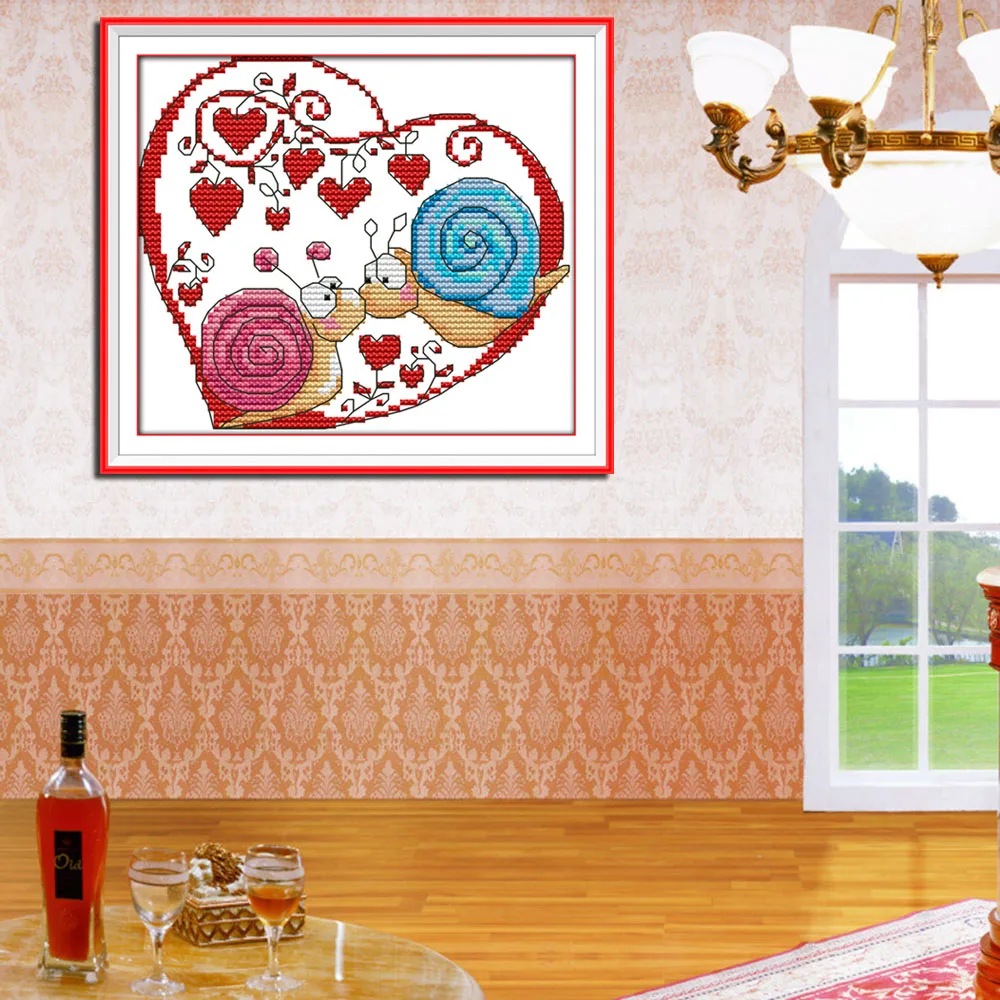 DIY Needlework Chinese Counted Cross Stitch Set Embroidery Kit 14CT Snail Couples Pattern Cross-Stitching Home Decoration