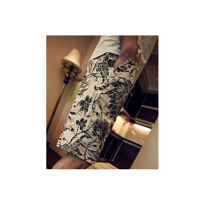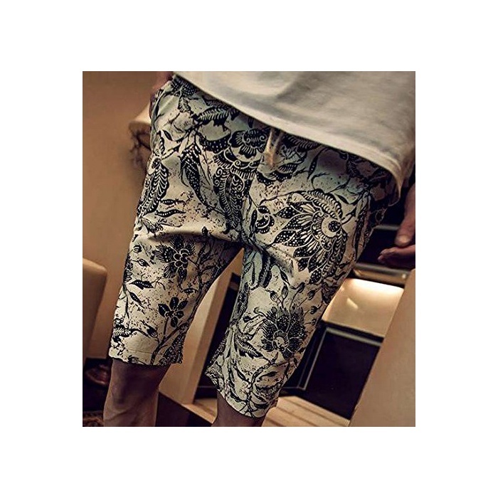 원본상품명: (アルファフプ) α-HOOP メンズファッション 夏 服 5 分 丈 ハフパンツ 花 柄 オラオラ お兄 系 短パン 部屋着 M ~ XXL 大きいサイズ TAN-1