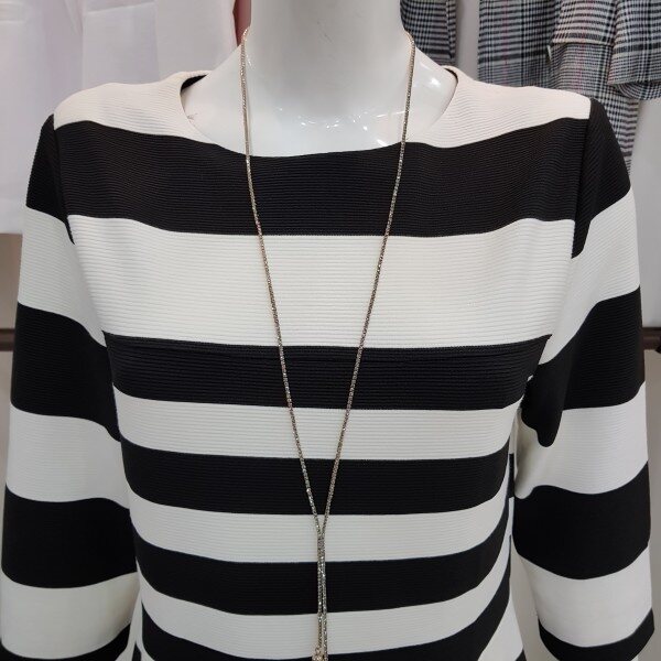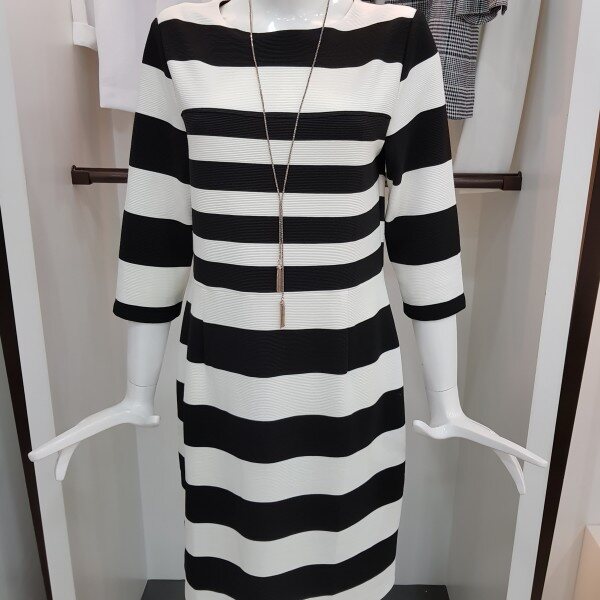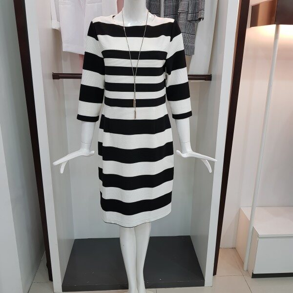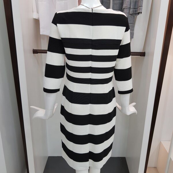 도톰한 오트만 져지 소재의 흑백 스트라이프 원피스봄가을추천