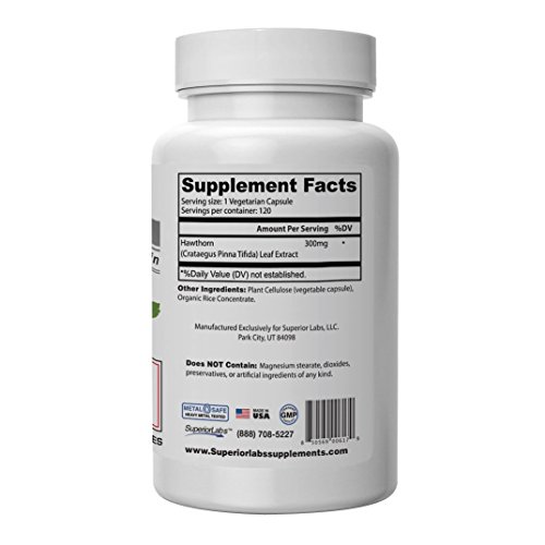 -. Feature : ABSOLUTE PURITY - ZERO SYNTHETIC ADDITIVES, FILLERS, HEAVY METALS, MICROS - You will never see unneccessary additives such as stearates, dioxides, glycerides or fillers other brands use to make manufacturing cheaper, faster and easier. In addition we test all ingredients and products for industrial heavy metals polution and harmful bacteria common in plant and ingredient material. / MULTIPLE HEALTH BENEFITS - Our Hawthorn supplement is a non-GMO and non-synthetic dietary supplement that helps maintain circulatory and digestive health while supporting cardiovascular function.* / POWERFUL HAWTHORN SUPPLEMENT - Superior Labs's Hawthorn Vitamin Supplement is a powerful antioxidant vitamin that is created with superior quality-assurance standards. All dietary supplement companies must be gmp and fda compliant. But very few companies can pass the stringent standards of NSF. All of our products are produced in facilities that have been 3rd party audited and certified for quality by NSF, one of the most stringent quality manufacturing assurance organizations in the industry. / EFFECTIVE 300 mg DOSAGE - Designed to uphold healthy and vibrant skin, our Hawthorn supplements are packed with an effective yet safe 300 mg dose.* Capsules are easy to swallow thanks to our vegetable capsules. / NO RISK, AND NO HASSLE - For almost a decade, we have been delighting Amazon customers. If you are not satisfied with the benefits, results, or are unsatisfied with the product in any other way, please contact us and we'll gladly refund your money in 48 hours or less. That's it - no questions, no hassle, no risk.