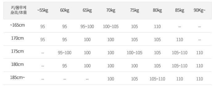 키/몸무게별 추천사이즈