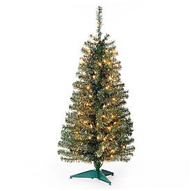 4 FOOT SILVER PRE-LIT CLEAR TINSEL CHRISTMAS TREE W/ 100 LIGHTS