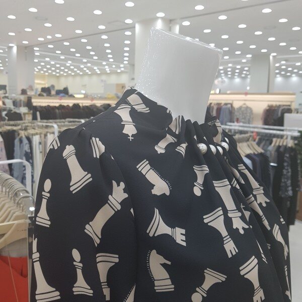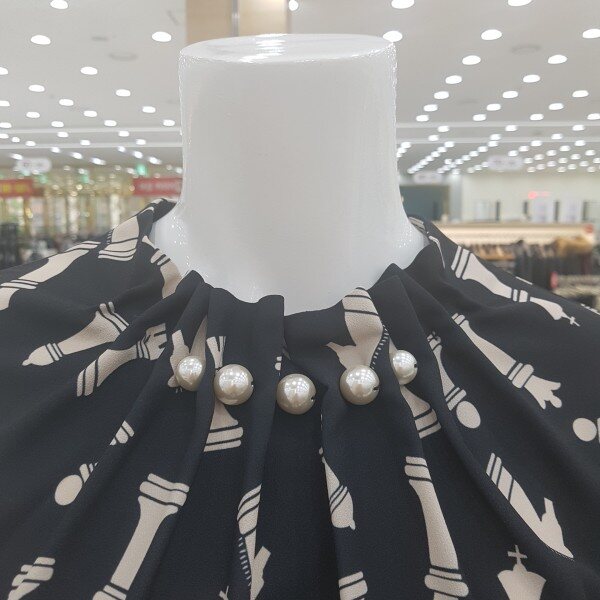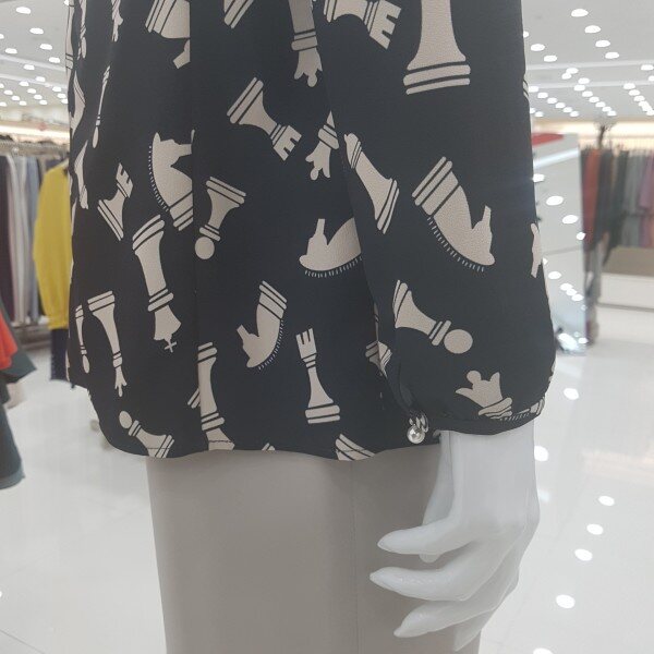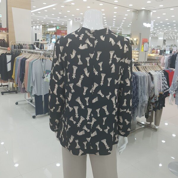 목선에 주름을 넣어 개성있게 표현한 체스 무늬 블라우스입니다.