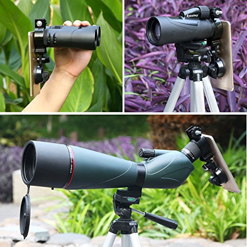 Studio : Eyeskey Publisher : Eyeskey Binding : Misc. Product Description This cell phone spotting scope adapter mount can be compatible with telescopes, binoculars, monoculars and night vision spotting scopes. With this adapter mount, it is easy for you to take amazing photos while you are taking outdoor activities such as hiking, viewing wildlife, bird-watching or sport events..