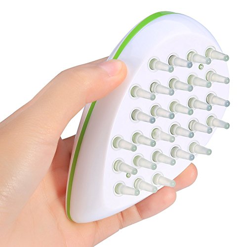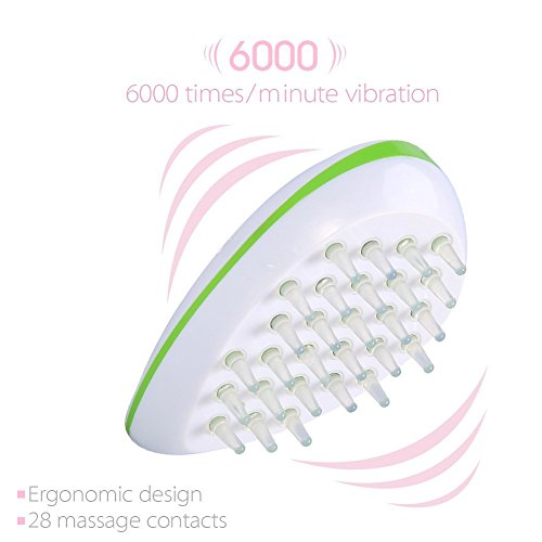 Specifications: Item Type: Electric Massage Comb Material: Silicone, ABS, Rubber Paint Color: Orange, Green, Pink (Optional) Powered by: 2 x AAA Batteries (Not Included) Package Weight: Approx. 115-117g Size: Approx. 11.6 x 6.2 x 5.5cm / 4.57 x 2.44 x 2.17inch
