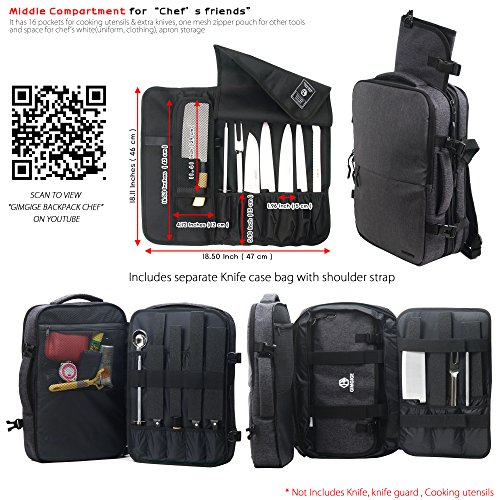 Please check " Gimgige knife backpack chef roll bag " on YouTube. You can see more information about very practical Backpack For YOU. Feature : - Gimgige Knife Backpack For Chef: Dimension Approx (L*W*H) 19.68 Inches x 15.15 Inches x 7 Inches