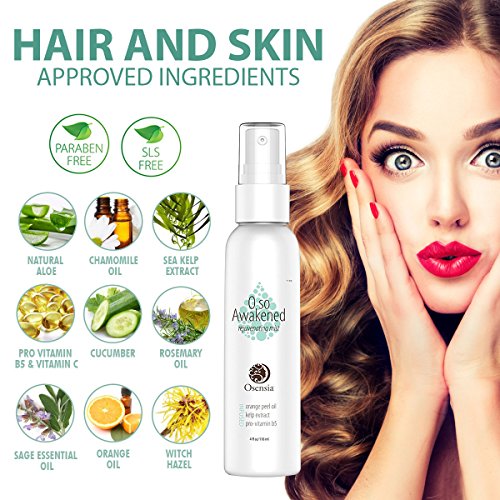 HAIR AND SKIN APPROVED INGREDIENTS - Osensia's mist does double-duty thanks to its all-star active naturals that your hair, face, and body are sure to drink right up. Our Silicone, Paraben, and SLS Free formula rejuvenates, restores, and hydrates dry skin, color treated hair, and anything that could use an extra boost with Natural Aloe, Chamomile Oil, Sea Kelp Extract, Pro Vitamin B5, Cucumber, Rosemary Oil, Sage Essential Oil, Orange Oil, Witch Hazel, and Vitamin C.
