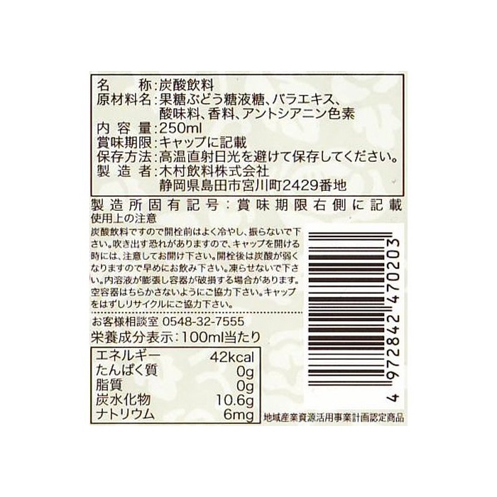 원본상품명: 木村?料 バラサイダ? 250ml×20本