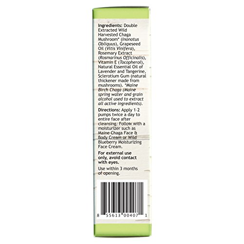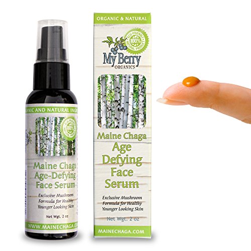 This Face Serum is one of the most unique and highly effective custom formulations on the market today, developed by My Berry Organics. This new concept in chaga mushroom face serum is where vitamin C serums were a few years ago. This new formula nourishes the skin and provides the highest natural immune support and anti-aging of active ingredients with this rare mushroom. This is a must-have daily regimen product for men and woman of all ages for anyone who has been exposed to the skin-damaging effect of the sun or wants to help preserve younger looking skin. The wild harvested Maine chaga mushroom is loaded with over 200 types of antioxidants, full of vitamins and minerals and rated one of the highest nature-sourced botanicals of skin nourishing SOD (SuperOxide Dismutase) and anti-aging melanin. This mushroom complex contains extremely higher antioxidant levels than vitamin c serums in neutralizing free radicals that age our skin. Those with a very light complexion may receive an added benefit of a temporary tint of natural bronze. Due to the chaga being wild harvested, each batch of serum may differ in color and consistency. This is normal and such is the nature of using a wild harvested main ingredient in the formulation. Each batch has all of the same nutritional properties. Do not store the serum in too cool of a place (keep at 68 degrees or warmer) as this may create more of a gel consistency and make it harder to dispense. If this happens, move the serum to a warmer spot. For all skin types except for those of whom have acne prone skin. Use twice daily after cleansing and follow with a moisturizer such as with Maine Chaga Face & Body Cream or Wild blueberry Moisturizing Face Creme. Read our personal story on the web at My Berry Organics.Feature