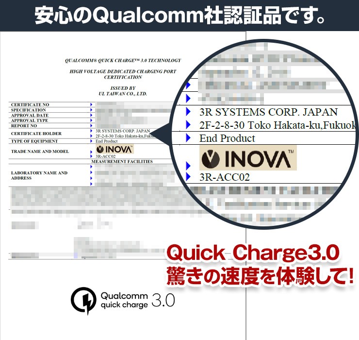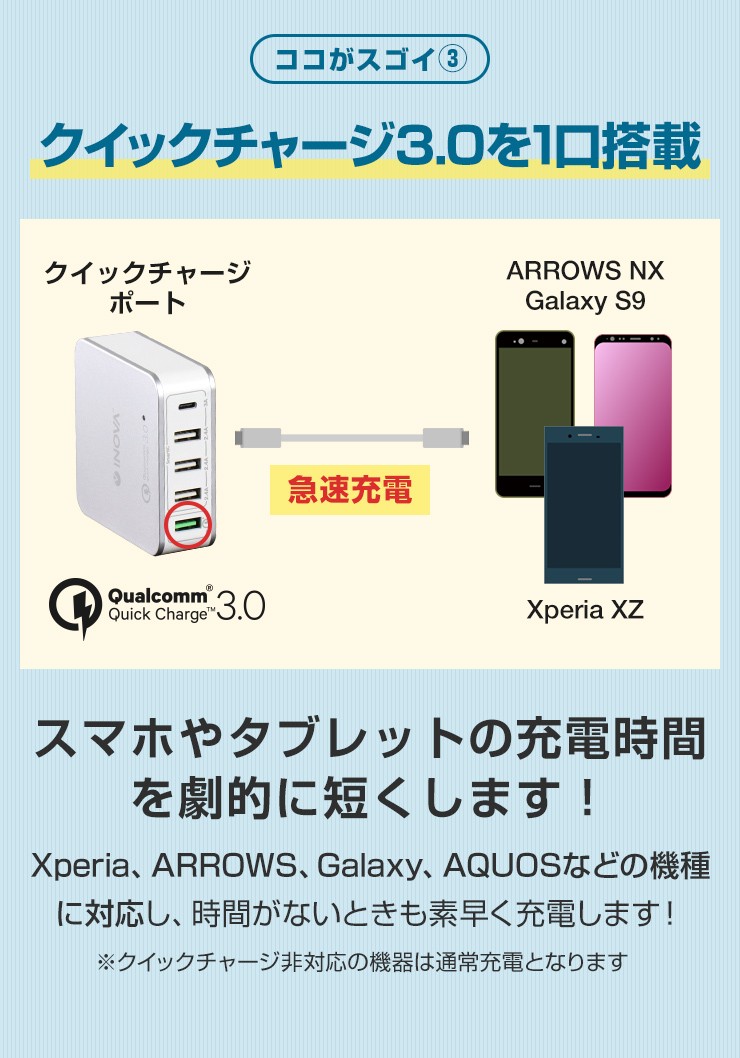 | 出力3 | QC3.0:3.6-6.5V 3A、6.5-9V 2A、9-12V 1.5A(18W MAX) |