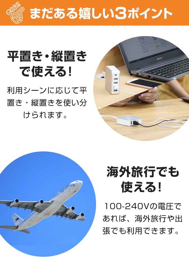 | 出力1 | USB:5V 2.4A(MAX)×3 |