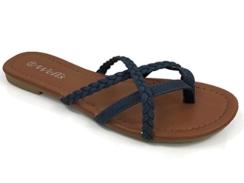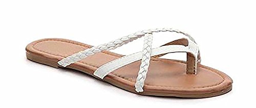 Summer Alva Flip Flops Criss Cross Strappy Braided Straps Thong Sandal Slip On Flat