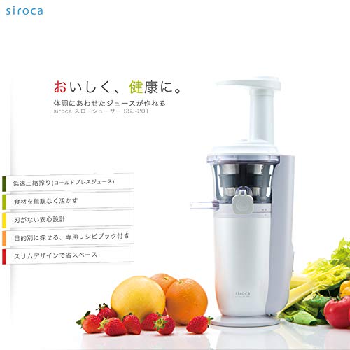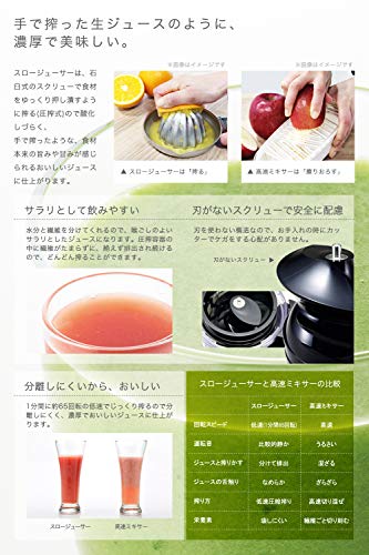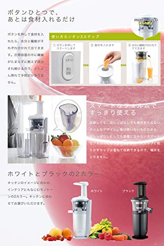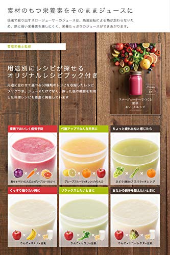 食材をゆっくりと搾るので熱に弱い栄養素が壊れにくく、搾りたての100%ジュースが毎日ご自宅で楽しめるスロージューサー。