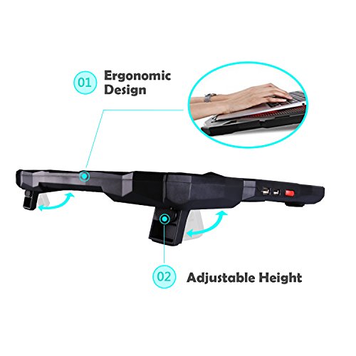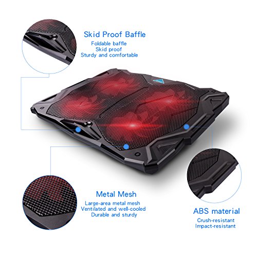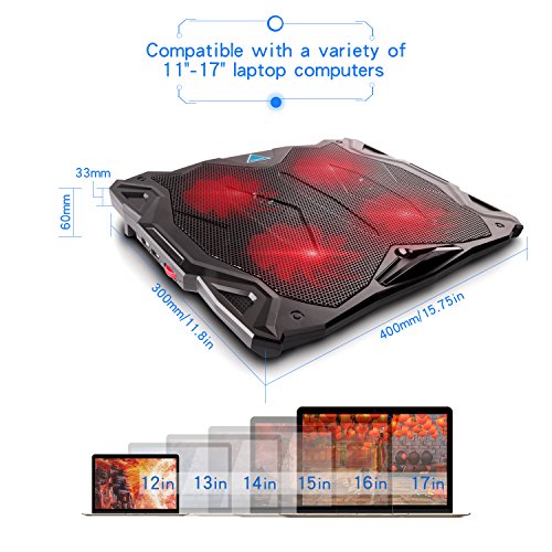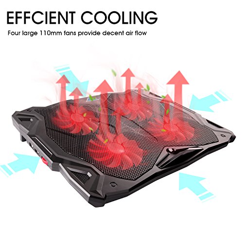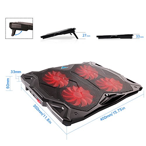 -. Feature : Powerful, Ultra-quiet and High Efficiency: 4 cooling fans with 1200RPM and red LED Lights help circulate excess heat dissipation from your laptop. / Multi-function Speed Controller and Wide-range Application: This laptop cooler features a multi-function speed controller, which can not only control the on/off swtich but can also adjust the speed of the laptop cooling fan. The Tenswall laptop cooling fan is compatible with a variety of 11"-17" laptop computers including Apple Macbook Pro Air, Hp, Alienware, Dell, Lenovo, ASUS, etc. / Ultra-slim and Skid Proof Design: This slim, portable and light weight laptop cooler allows you to protect your laptops with a unique skid proof design. This sleek laptop pad reduces the damage sustained from crashes and the modern and delicate appearance and built-in LED indicators add a modern to your home. / Extra USB ports and switch: The Tenswall laptop cooling pad features an extra USB port and wind speed switch design as well as a built-in dual-USB hub. The dual-USB hub allows you to connect to more USB devices and the adjustable fan speed gives you the best balance between silence and performance. / Impact-resistant and Ergonomic Comfort: The Tenswall Laptop cooler is crafted from high-quality ABS material to extend the service life. It also doubles as an ergonomic stand with two adjustable height settings for even more customization.