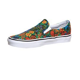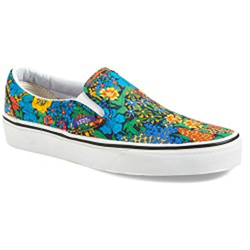 Canvas upper with an all-over floral print, elastic side accents, Vans flag label and Vans Original Waffle Outsole.