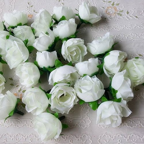Artificial Silk Rose Head Colorfulife 3cm Simulation Flower Bud Wedding Home Party Decor DIY Hair Clip Decorative (100, White)