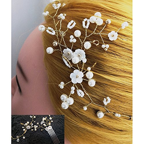 (FOH)/Styling Tools/Styling Accessories/DIRECT FROM USA/FOH Set of 2 Handmade Bridal Crystal Beaded Floral Wedding Hair Vine,Hair Comb, Bridal Headpiec...