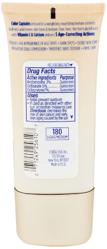 ReleaseDate : 2013-09-12 Studio : L'Oreal Paris Cosmetics Publisher : L'Oreal Paris Cosmetics Binding : Misc. Product Description Introducing Visible Lift Color Correct Cream, the next generation of multi-tasking beauty: color and tone correction in one multi-action makeup. This weightless, nourishing formula intensely hydrates skin without feeling heavy or greasy. It contains sheer color capsules to correct and even skin tone for a brighter complexion, plus it’s infused with Vitamin C Calcium for visibly age-correction actions: 1. Reduces the look of dark spots 2. Evens and corrects skin tone 3. Brightens complexion 4. Nourishes skin 5. Protects with SPF 20 0