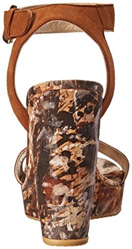 Two-piece sandal with faux-leather upper featuring graffiti-covered sold and platform wedge