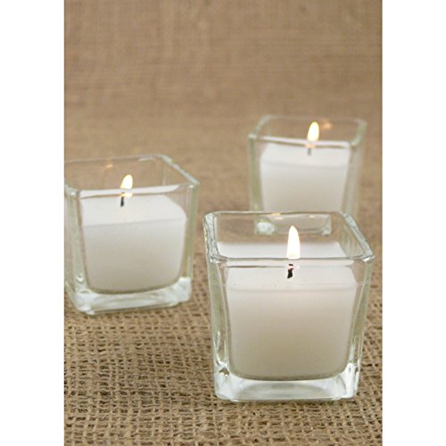 Serene Spaces Living 10-Hour White Unscented Cube Votive Candles in Set of 12 – Classic Clear Glass Design in 2” Cubes