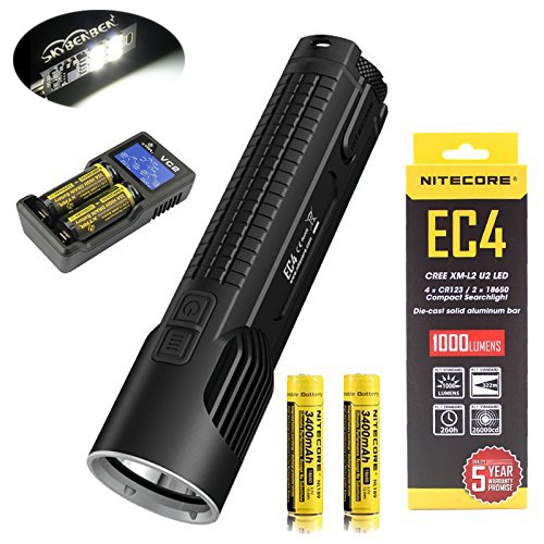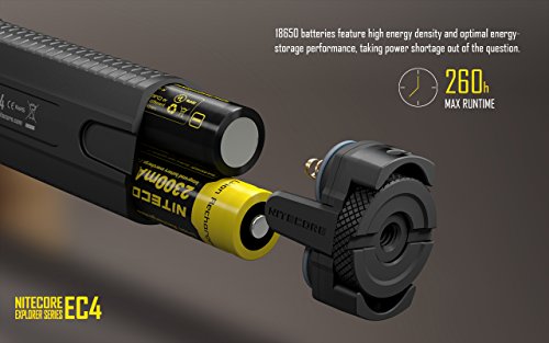 Studio : Nitecore Publisher : Nitecore Product Description Features · The world's first die-cast flashlight · Solid lightweight aero grade aluminum alloy construction · Utilizes a CREE XM-L2 U2 LED · Maximum output of up to 1000 lumens · Dual switch design offers unprecedented ease of use · Thumbscrew lock on tailcap doubles as a tripod connector · 5 brightness levels and 3 special modes available · High efficiency constant current circuit enables maximum runtime of 260 hours · Features advanced temperature regulation (ATR) technology · A power indicator built into the on/off switch indicates remaining battery power (patented) · Direct access to ultra-low and turbo output · A SMO reflector offers focused beams of 322 meters · Reverse polarity protection prevents damage arise from incorrectly inserted batteries · Stainless steel retaining ring protects core components from damage · Toughened ultra-clear mineral glass with anti-reflective coating · Waterproof in accordance with IPX-8 (2 meters submersible) · Impact resistant to 1.5 meters · Tail stand capability Dimensions Length: 5.90" (150mm) Head diameter: 1.57" (40mm) Tube: 1.54" × 1.10" (39mm×28mm) Weight: 6.03oz (171gram) (without battery) Package Includes: Nitecore EC4 Flashlight x1 Nitecore 18650 3400mAh Battery x2 Xtar VC2 Battery Charger MINI USB Light 0