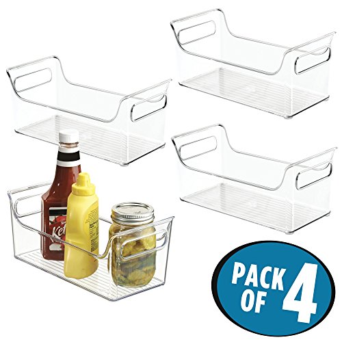 mDesign Portable Refrigerator Condiment Bin Caddy - Pack of 4, Clear