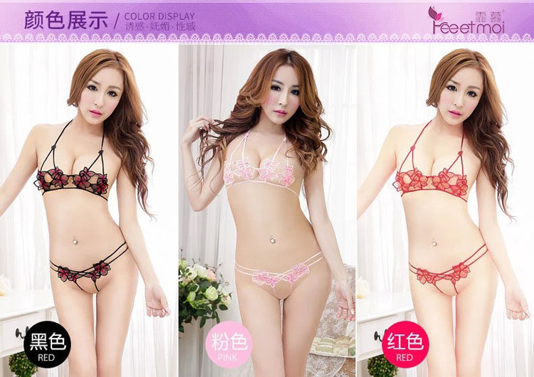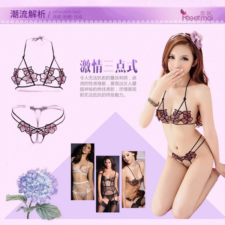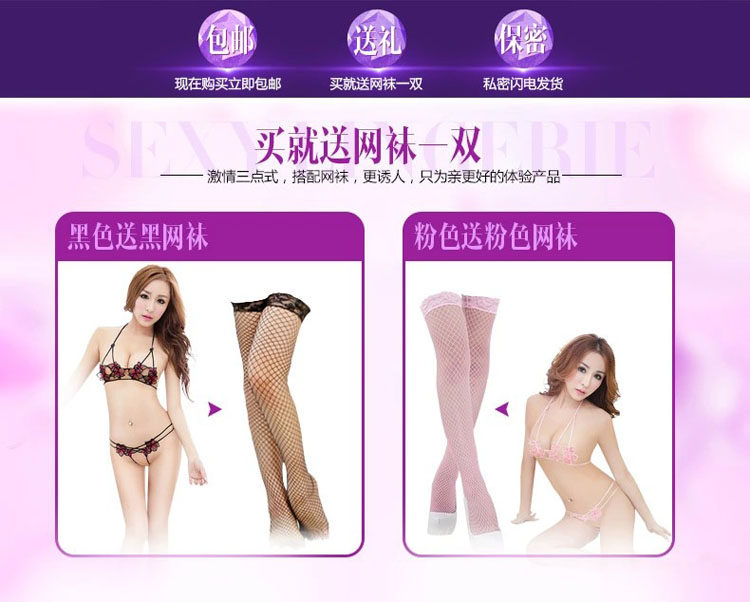 【性感透视开档露乳激情三点式比基尼套装女士情趣内衣制服诱惑真人】
