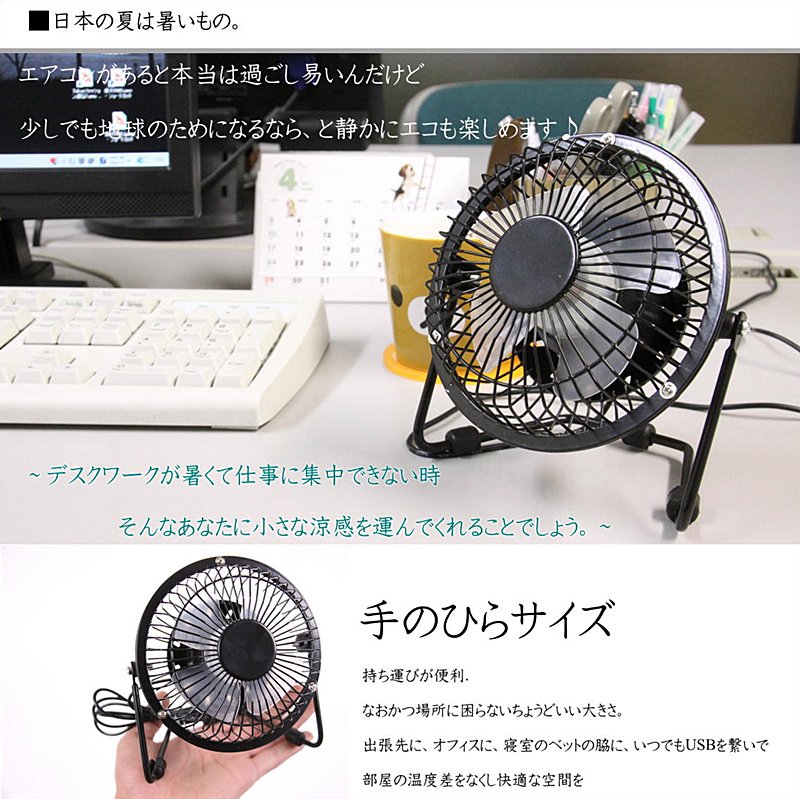◇商品詳細◇手の平サイズにも関わらず、パワーはBIG!デスクワークに最適なUSB接続型卓上扇風機◇サイズ◇本体直径13.5cm高さ15cm奥行き8cmUSBコード110cm◇素材◇ステンレス・お使いの端末により画像の色が異なる場合がございます。・返品は欠陥商品のみとさせていただきます。・店舗同時販売の為、品切れの場合がございます。 ご了承くださいませ。
