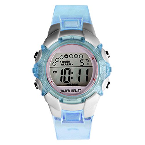-. Title : Girls LED Quartz Alarm Date Waterproof Sports Digital Wrist Watch -Blue